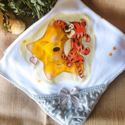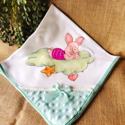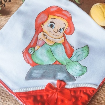 Fraldas de Passeio em algodão 100%, pintadas à mão com tintas especiais para tecido. É possível personalizar as fraldas com o nome do bebê, escolhendo o desenho e as cores desejadas.
