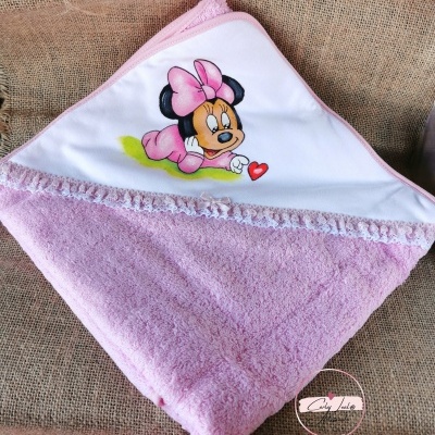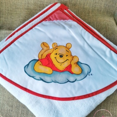 Toalhão de Banho com 1mt x 1mt em turco 100% algodão debruado em tecido com várias possibilidades de cores. Pintados à mão com vários motivos. Possibilidade de personalizar com o nome do bebé.